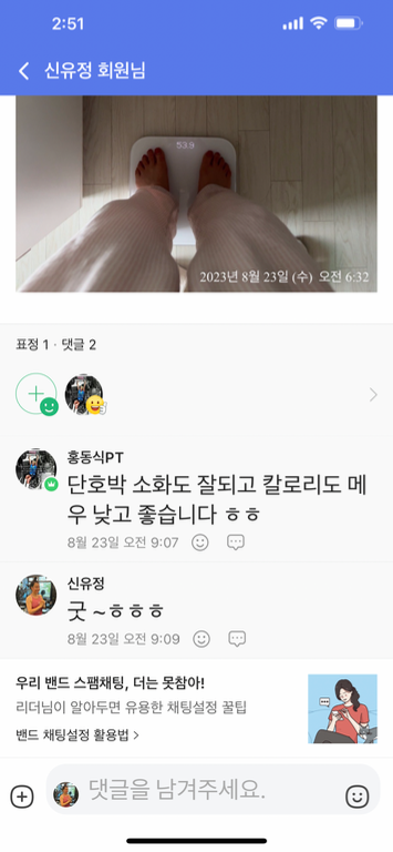 물어봐주시고 운동 모습을 동영상으로 찍어 밴드에