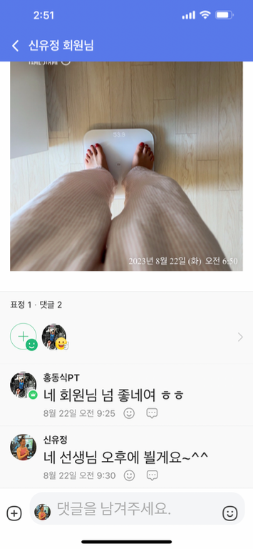 남은 기간 동안 더 열심히 운동해서 선생님과 함께 좋은 결과 이루고 싶네요~