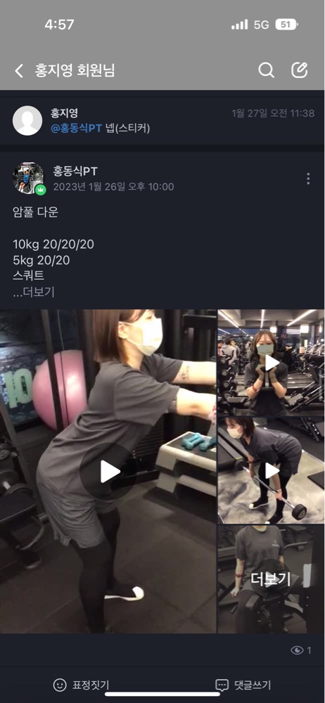제가 일때문에 자주 못나올때도 있었는데 옆에서 응원해주시는 홍동식 쌤만 믿고 앞으로의 몸의 변화도 기대중이에요!!