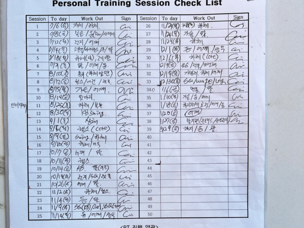 저는 그동안 웨이트 트레이닝을 여러 차례 시도했으나 매번 부상이 반복되어 몇 주 진행 후 중단되는 상황이 반복되었습니다. 이에 근본적인 문제를 해결하고자 PT를 받아보기로 결정했고, 실제로 진행해본 결과 그동안 왜 부상이 발생했는지 명확하게 이해하게 되었입니다.