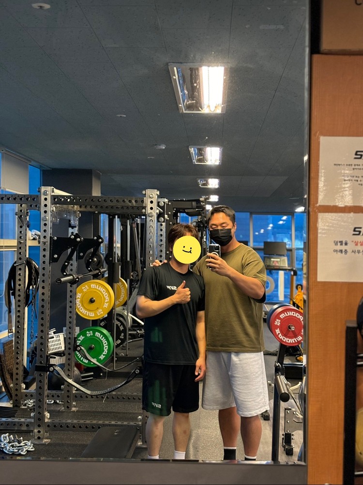 등치쌤~~ 처음가서 인바디 쟀을 때 너무 충격이였는데 그래도 근육량이라도 버티고 있어줘서 다행이었다😂 3달간 평일엔 식단, 주말엔 먹을거 먹으면서 9-10키로 건강하게 감량하게 도와준 등치쌤!