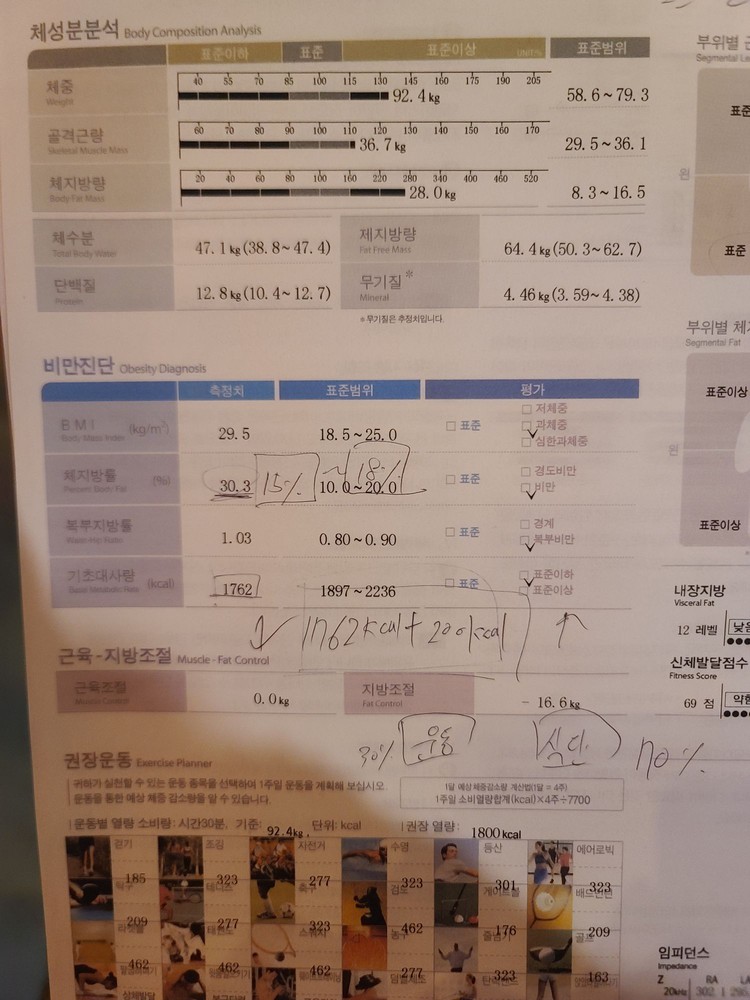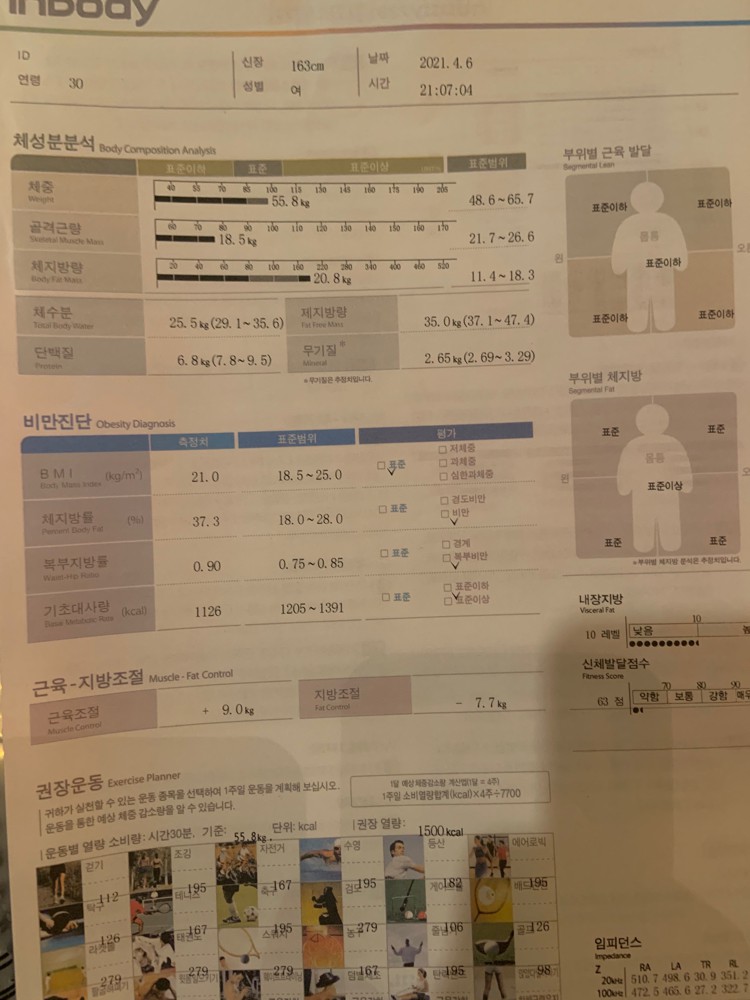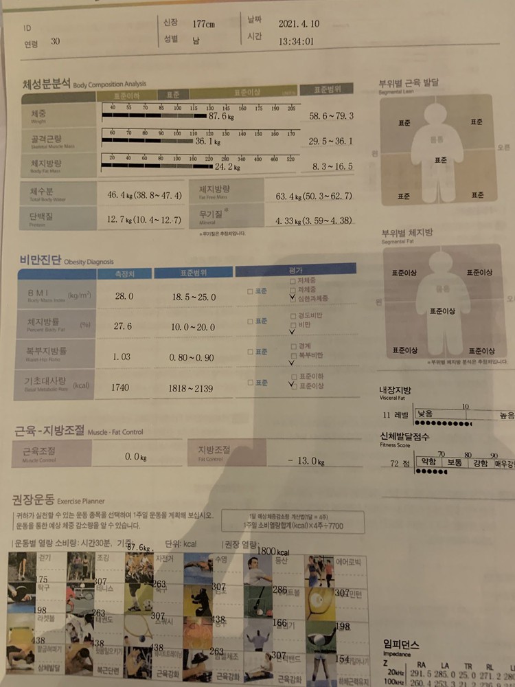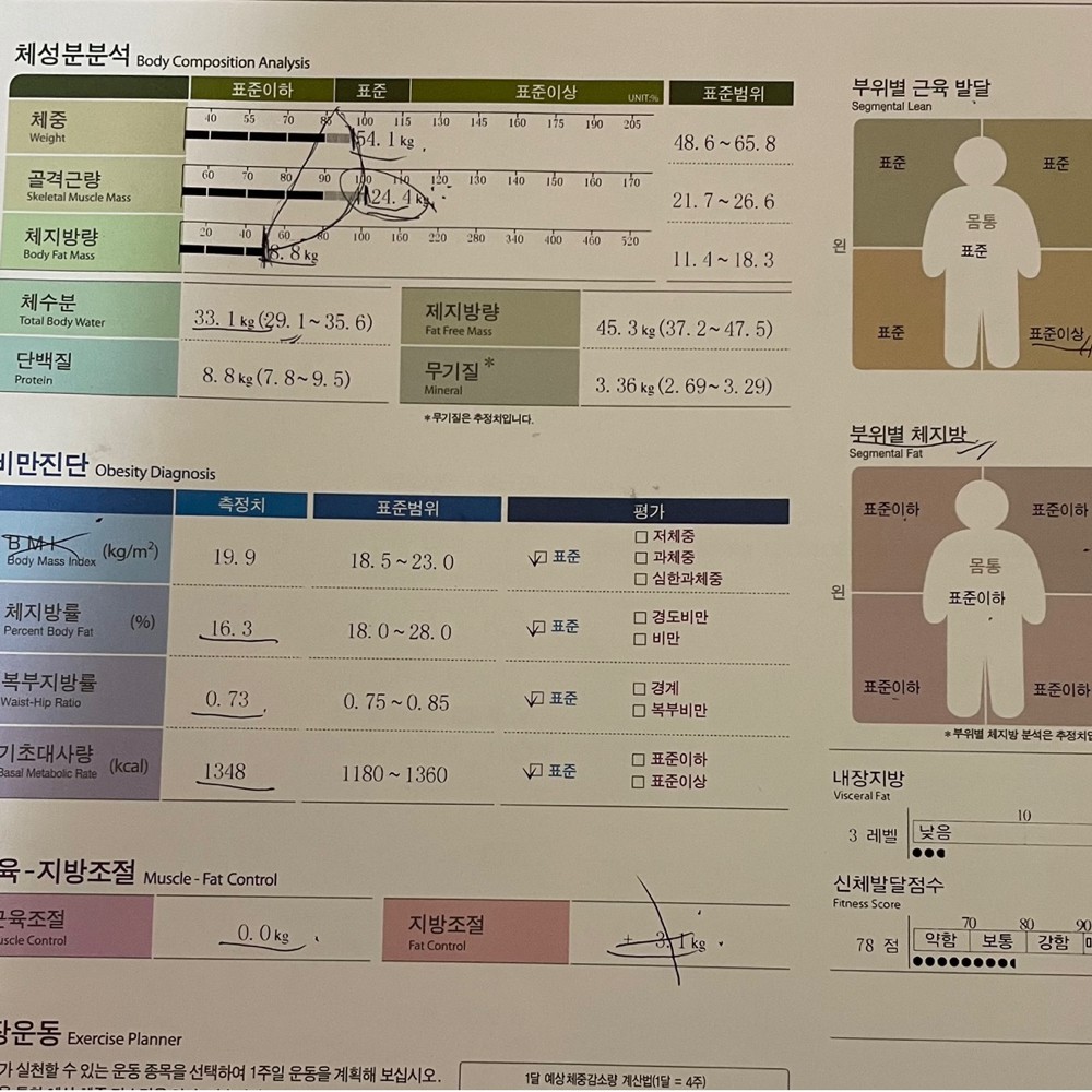 첫 방문 시 - 체중 64.8 / 골격근 28