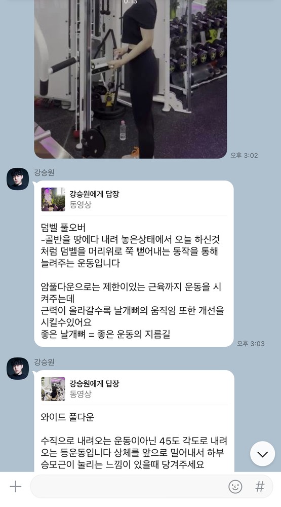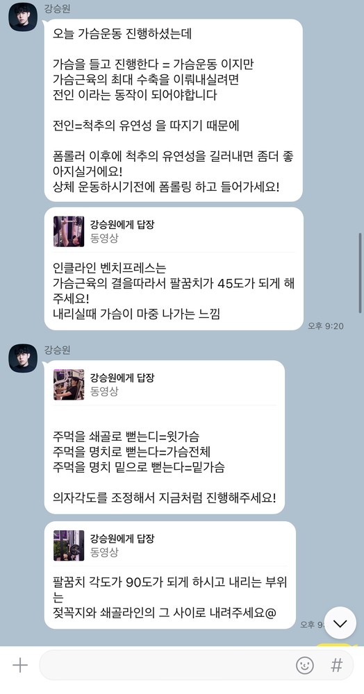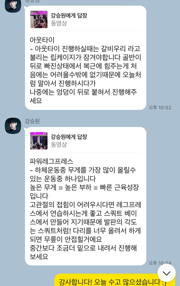 운동 후에는 운동 영상과 함께 자세한 설명까지 보내주셔서 혼자서 운동할때 참고하기 용이했습니다 :)
