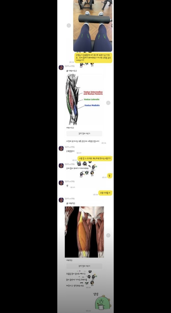 말모말모..이 선생님한테 이 가격에 pt를 받는건 정말 말도안되는 일이에요🤫 본인이 끊임없이 공부하면서 어떻게 하면 더 잘 알려줄수있을지 항상 생각하고 헬린이인 저도 진짜 쉽게 배웠어요😲 그리고 개인운동 복습하다가도 이 동작이 맞았나? 싶어서 물어보면 바로바로 알려주세요! 또 매일 개인운동 중량과 갯수를 체크해주고 동영상으로 남겨주셔서 개인운동할때 정말 많이 참고할 수 있는 점이 좋습니다. 그리고 이 성생님과 함께라면 물리치료까지 받을수도 있어욬ㅋㅋㅋ어깨, 목, 발목 등 아픈 이유를 알고 재활치료?도 덩달아 받을 수 있답니다😁 저도 처음에 선생님을 소개받은 입장이었는데 너무 만족해서 저희 엄마도 소개시켜드렸고 짱짱만족하고 계신답니다~ 엄마도 정말 좋아하세요.. 진짜로 선생님이랑 수업 안하면 ㅂr보,,,