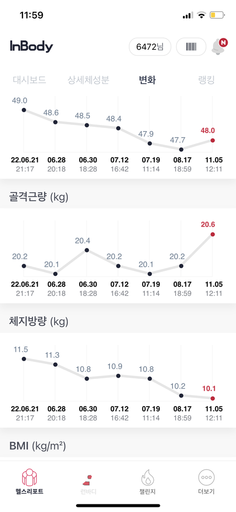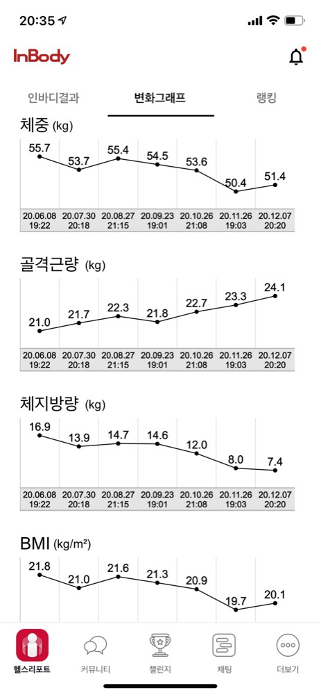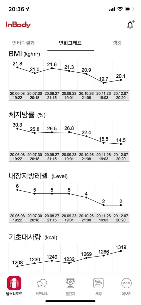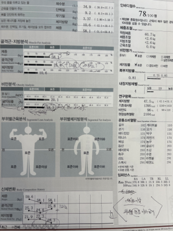 인바디 상으로도 체지방이 꾸준히 감소하고 있어서 몸이 건강해지고 가벼워지는게 느껴집니다