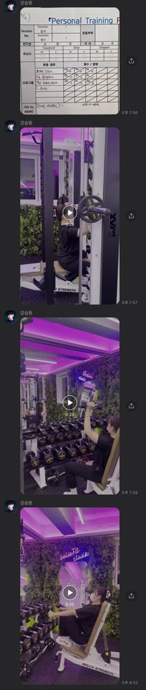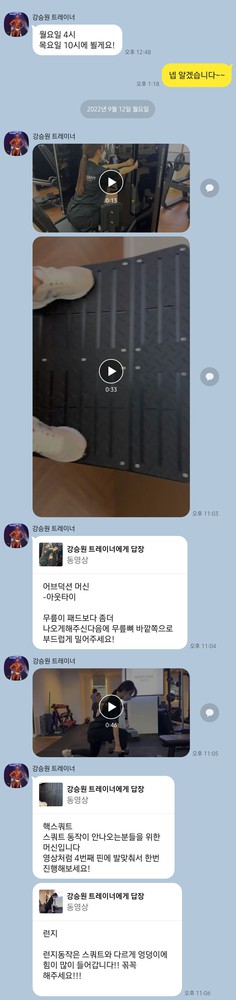 헬스장에서 혼자 운동하는것에 대한 두려움이 있었는데, PT받을때 영상을 항상 찍어주셔서, 이제는 PT없는날에 혼자 운동도 할수있게 되었습니다