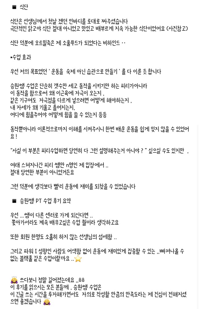 승원쌤한테 6개월이상 피티받고있는데