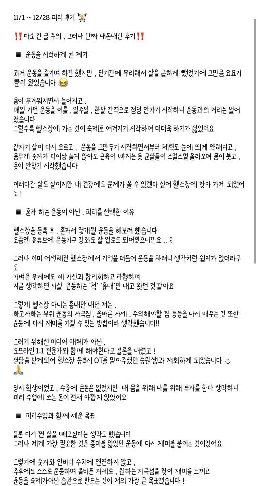 피티에 대한 두려움을 깨부셔주신 선생님이셔서 꼬옥 추천드리고 싶습니다☺️