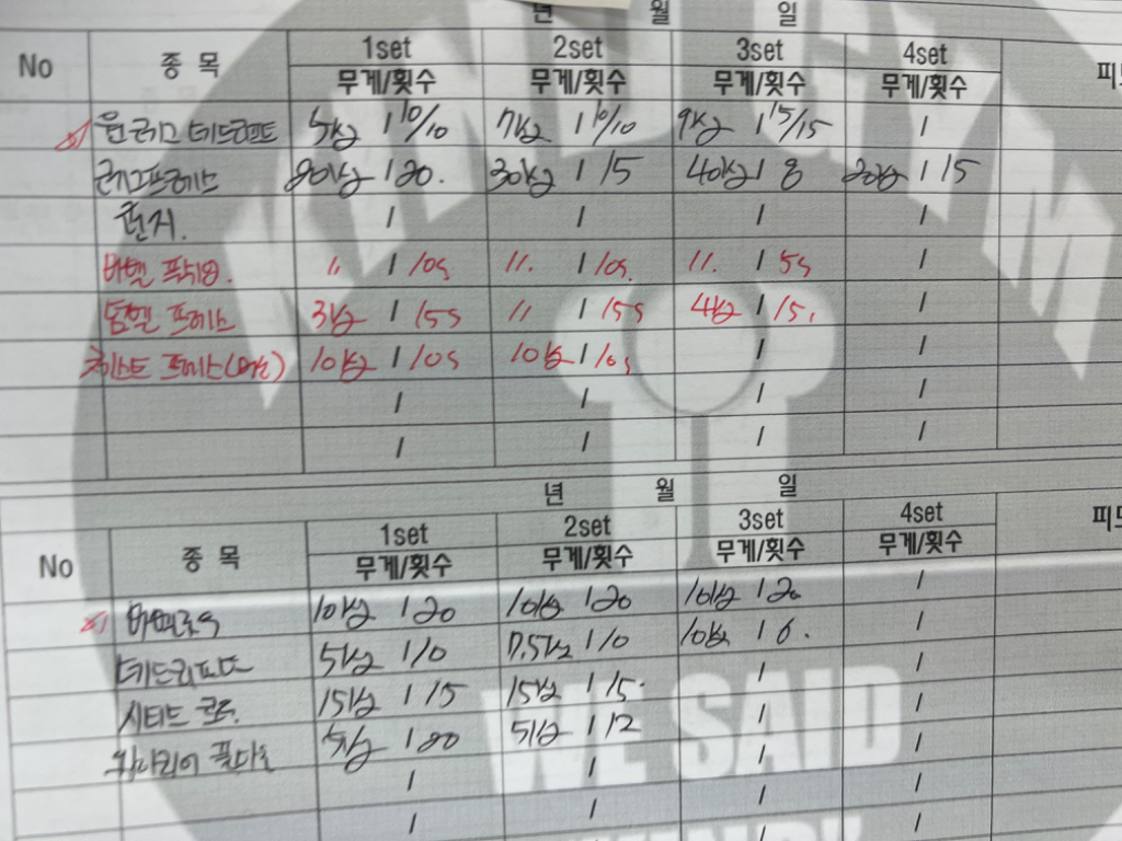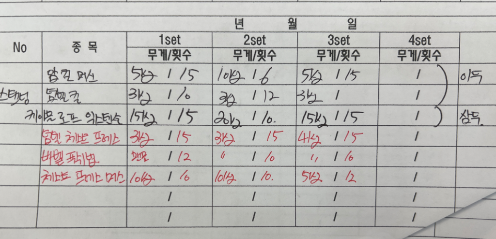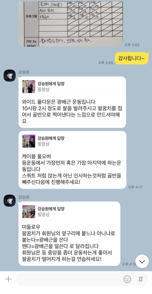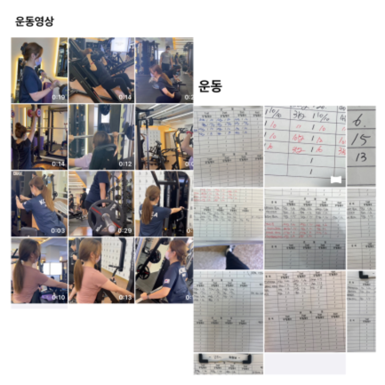 그리고 pt하면서 진행했던 운동들을 동영상으로도 찍어주시고 운동일지도 작성해주셔서 복습할 때 엄청 도움이 됩니당!