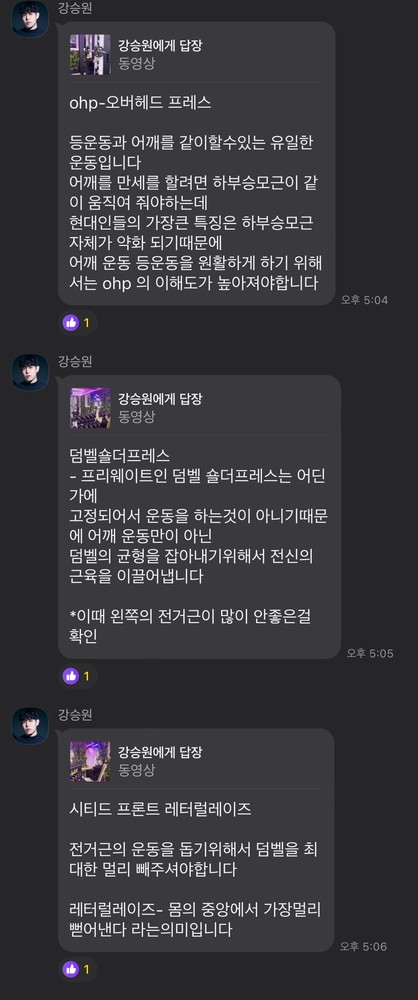 전문적인 지식을 바탕으로, 각 운동에 대한 효과와 중요점을 잘 설명 해주십니다.