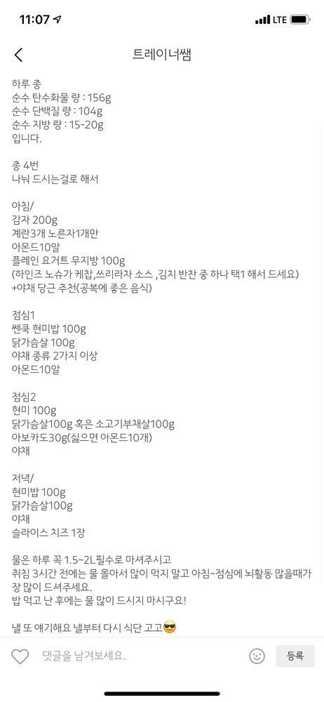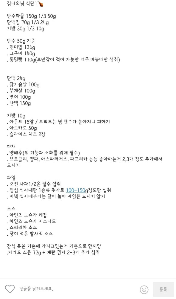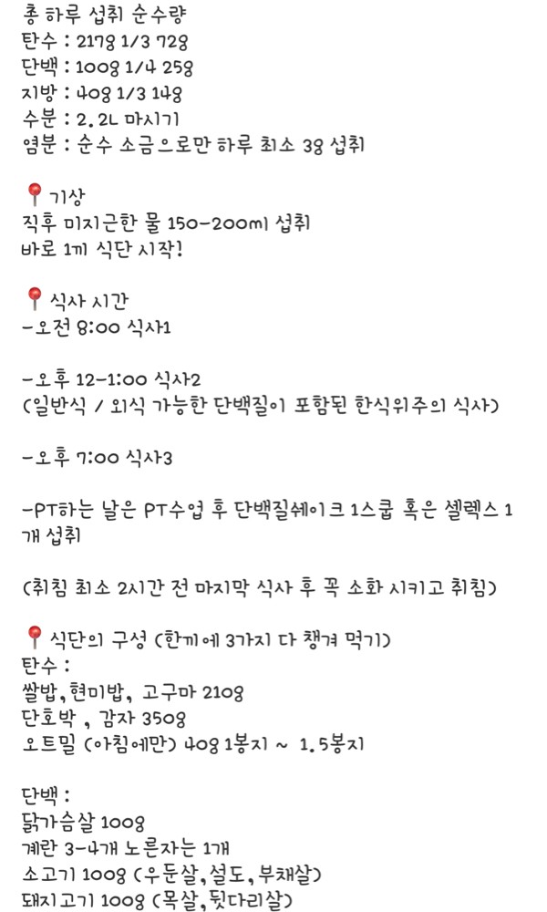 - 식단을 짜는 연습을 할 수 있어서 좋았습니다.
