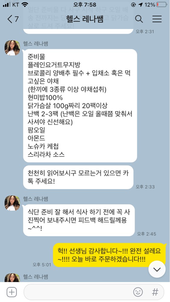 매 끼니 식단에 대한 피드백도 꼼꼼히 체크해 주시고 수업이 끝난 후에는 운동 피드백도 정리해주셔서 혼자서도 쉽게 운동 할 수 있었습니다!