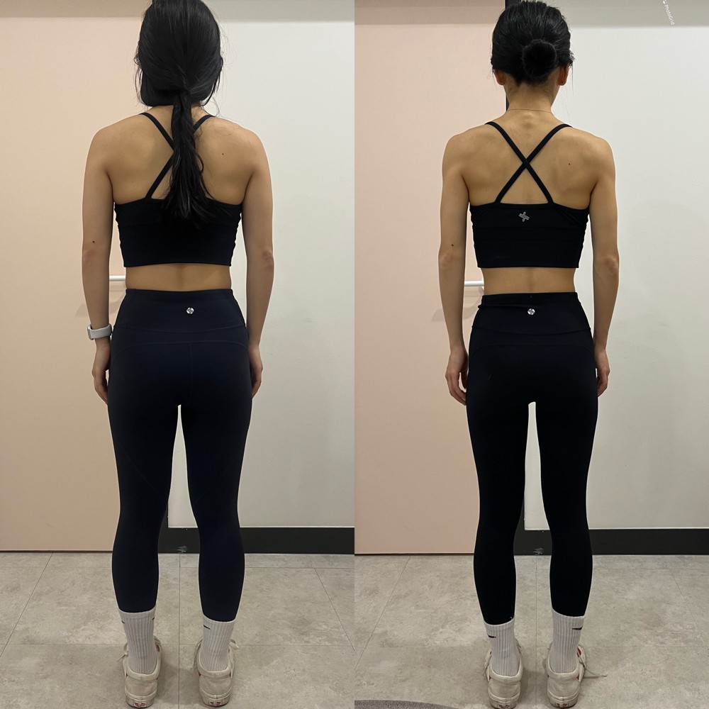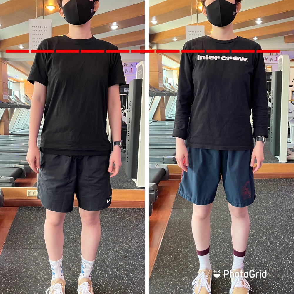 레나쌤과 첫 수업때 간단한 동작에도 정말 땀 뻘뻘 흘리며 운동했었는데 어느덧 2개월정도 함께 운동하면서 체력도 많이 좋아지고 무엇보다 자세가 많이 좋아진 것 같아요!! 😆 사진처럼 어깨 높낮이가 많이 차이 났었는데 균형이 맞춰졌고 항상 구부정하던 어깨와 등도 많이 펴졌어요! 아직 헬린이지만 더 늦기전에 쌤을 만나 운동한 것이 정말 다행이라고 여겨질만큼 수업하며 하루하루 몸이 더 좋아지는 것을 느낍니다!! 레나쌤은 대충 시간 때우는 수업이 아닌 부위별로 어떻게 힘이 들어가야 하고 자극이 와야하는지 자세히 설명해주셔서 올바른 자세로 운동하는데 매우 도움이 되었어용ㅎㅎ 그리고 항상 하나라도 더 할 수 있도록 해주시는게 느껴져서 더 믿고 운동할 수 있었던 것 같아요! 믿고 함께할 수 있는 쌤입니당 추천추천👍