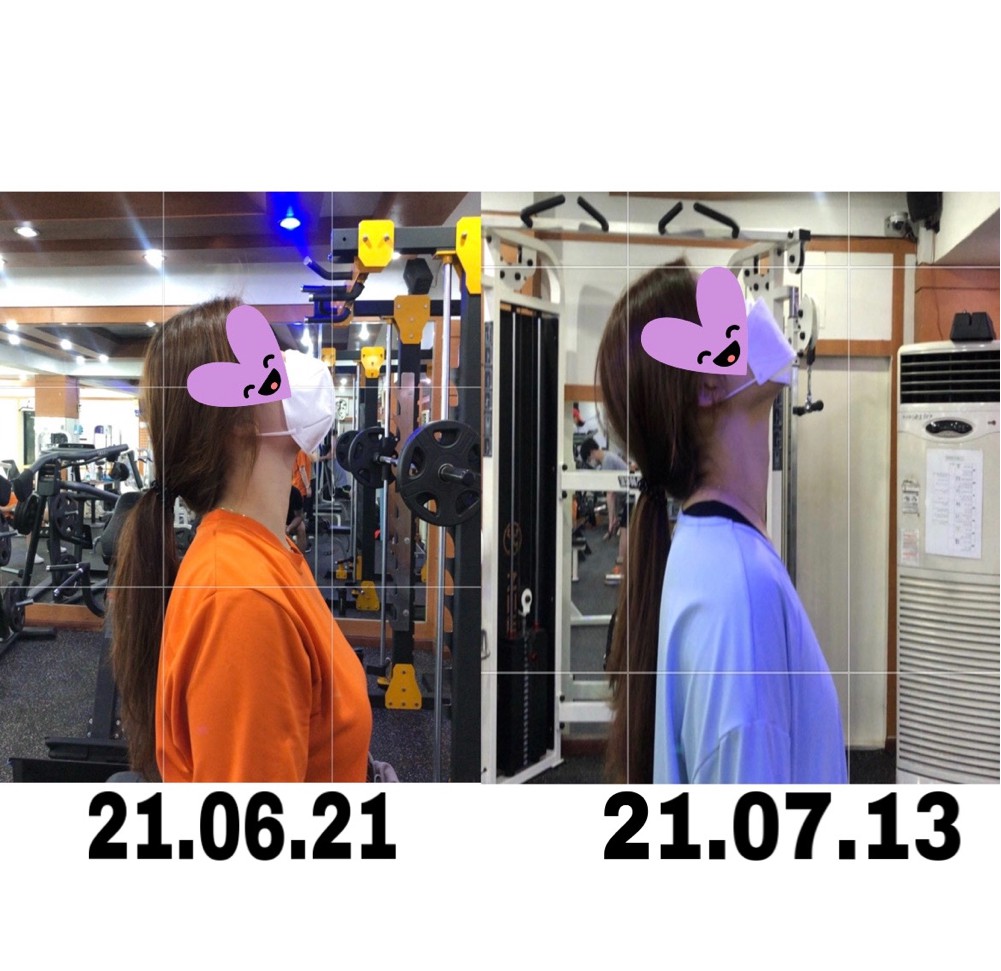 라운드 숄더에 거북목이였지만, 10회만으로도 많이 좋아졌고 운동을 하면서 어느 부위가 자극이 오는지 확실히 알려주시고, 그날그날 했던 운동들을 사진+동영상이랑 함께 자세히 보내주셔서 개인운동 할 때에도 도움이 많이 됐고,