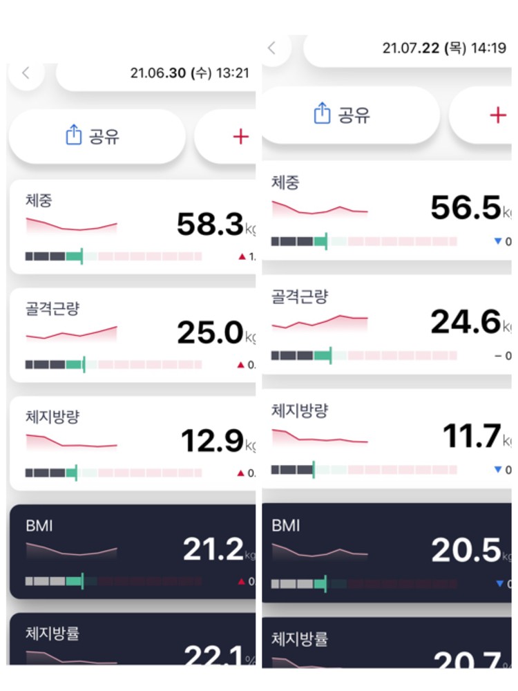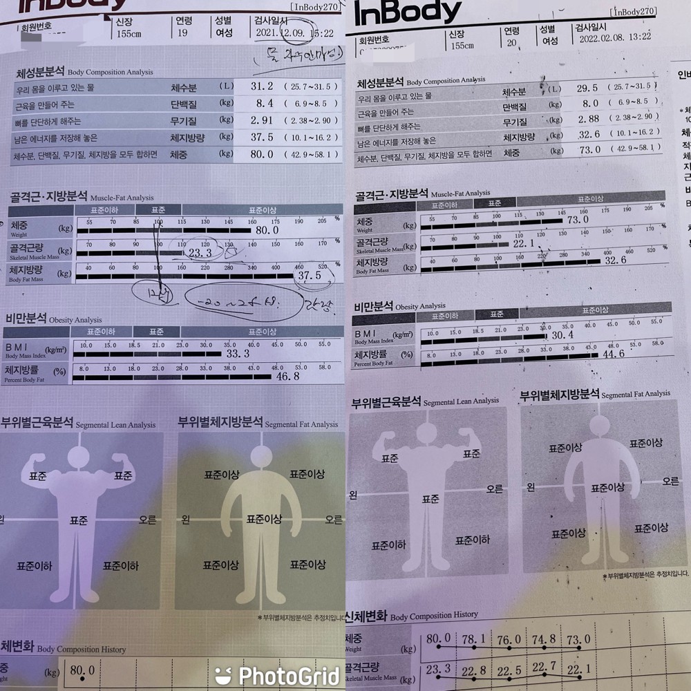 처음에 5kg를 들고 스쿼트하고 계단도 못올라가고 못걸었었는데 3개월이 지난 지금은 무리없이 50kg들고 스쿼트 할정도로 체력도 몸도 정말 좋아져서 요새 옷입는것도 즐겁고 거울보는게 즐거워요!!