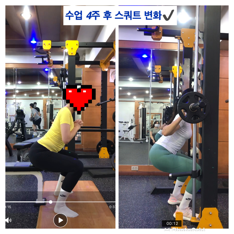 스쿼트도 엉덩이쪽 힘이 부족해서 제대로 동작을 못하고 뒤로 꽈당하려고해서 벤치두고 시작했던 제가 이제는 중량달고 스미스머신으로 스쿼트를 하게되었습니다. 정말 감사합니다.
