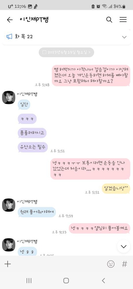 그동안 피티를 꾸준히 받아왔지만 마음에드는 선생님이 안계셔서 계속 바꾸다가 인재샘을 만났네요ㅎㅎ