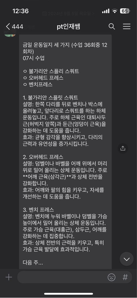 수업 이후 꼼꼼하게 부족한 부분 알려주시고, 부족한 부분은 이렇게 더 운동하면 좋다고 말해주셔서 러닝머신만 하다가 웨이트 운동도 하고, 이후 지금은 스스로 운동 루틴을 짜고 헬스장을 다니게 되었습니다.
