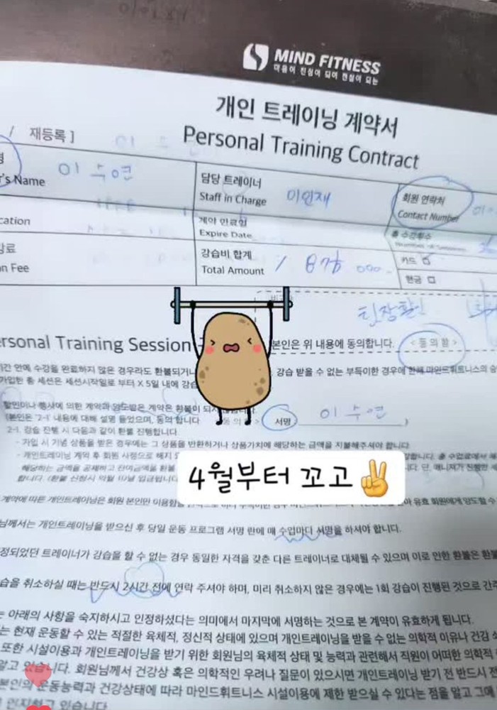 은지님 처음 왔을떄 의지가 저의 운동 가르침의 열정을 기름을 부어주셨어요 ^3^