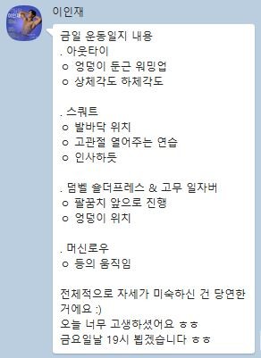 운동 놓치말고 꾸준히 해주세요 ㅎㅎ