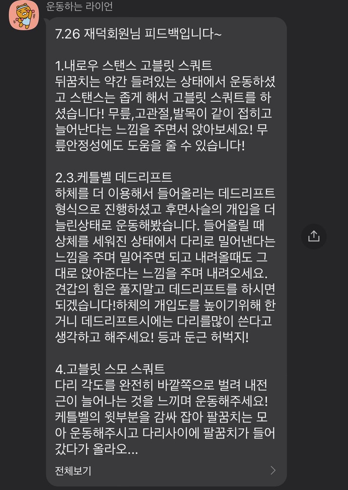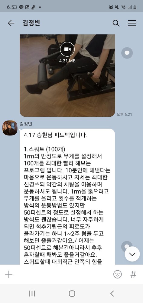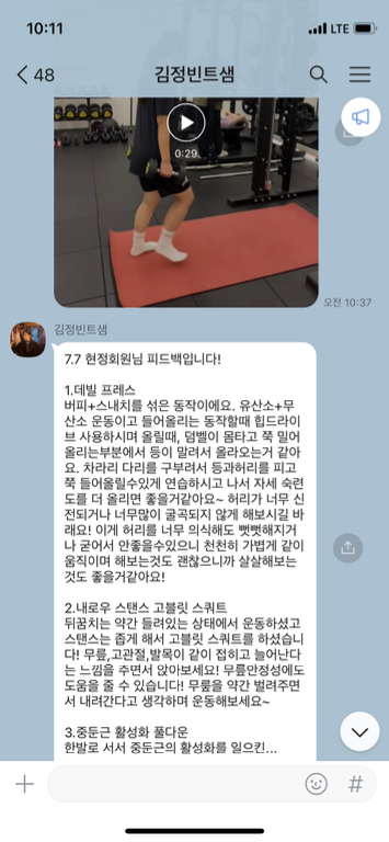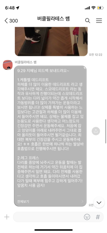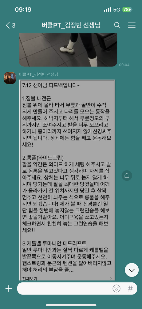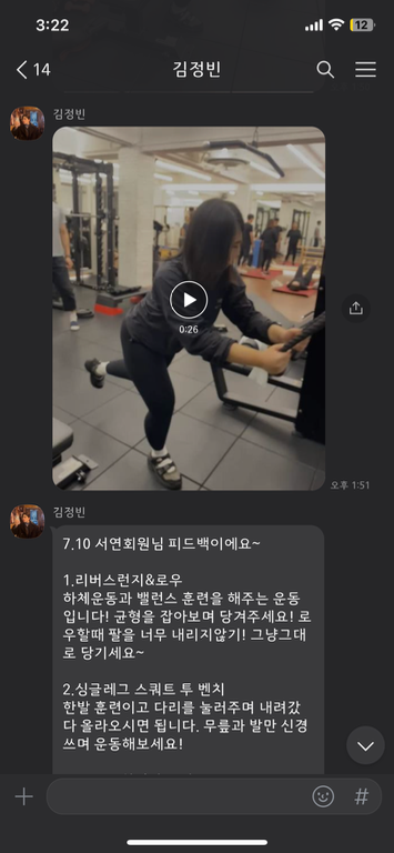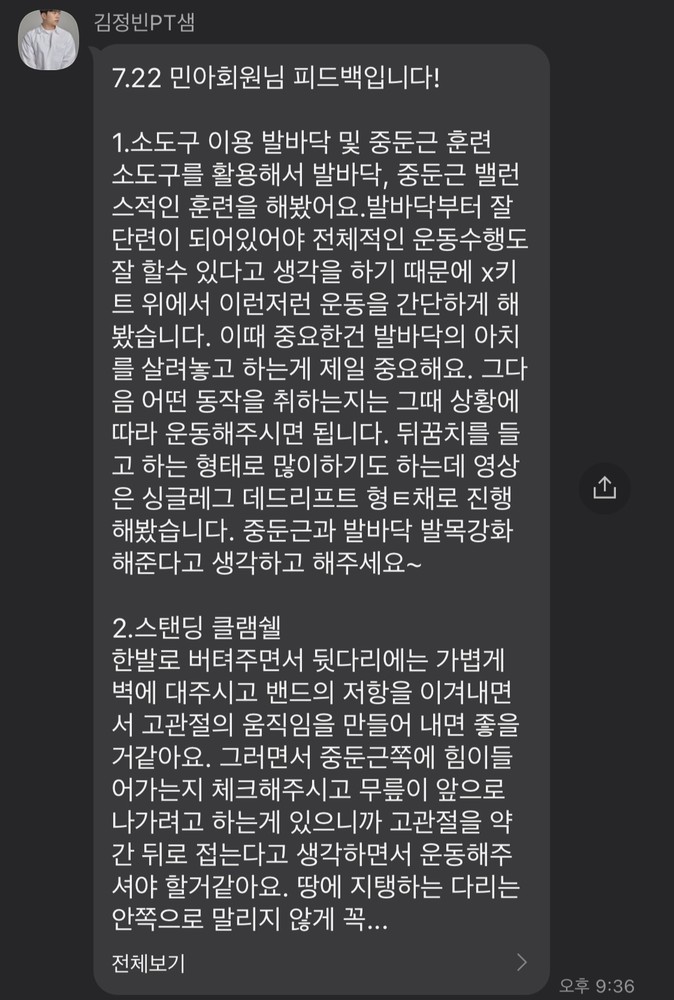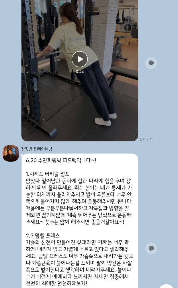 피티 다음날에는 운동들을 반복하시는데 그 모습을 보면 괜히 뿌듯함을 느껴요.