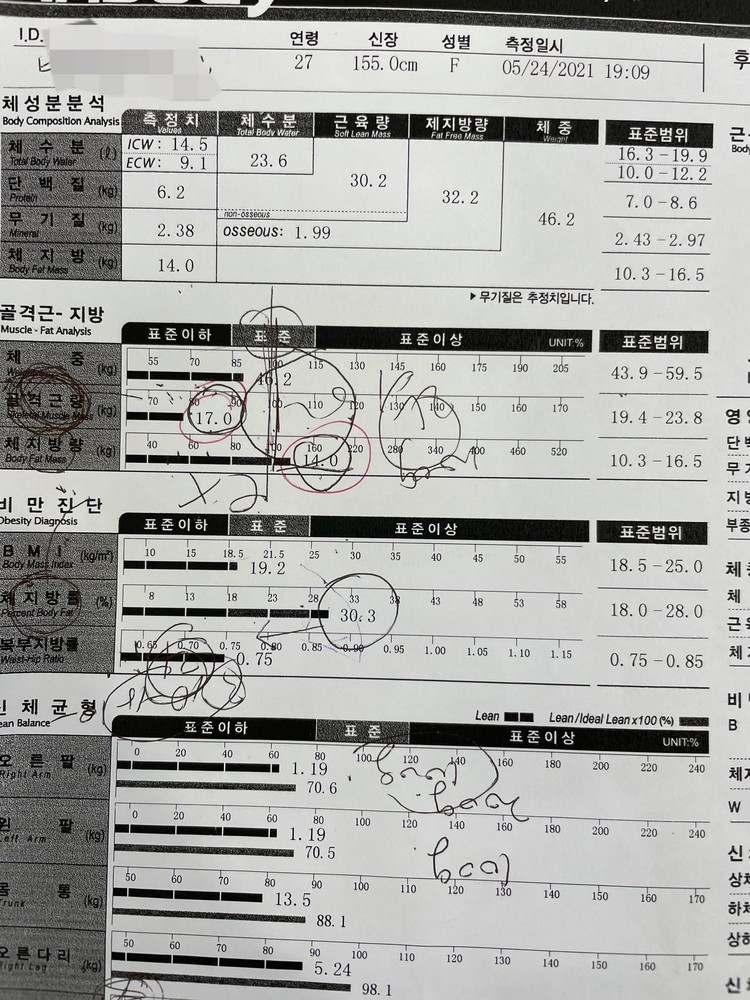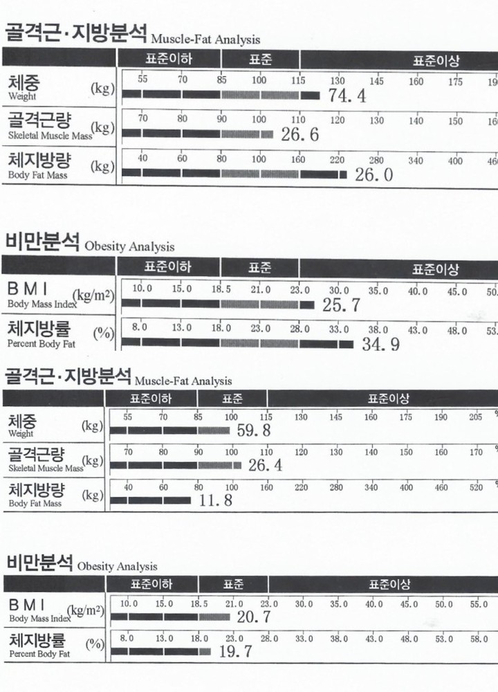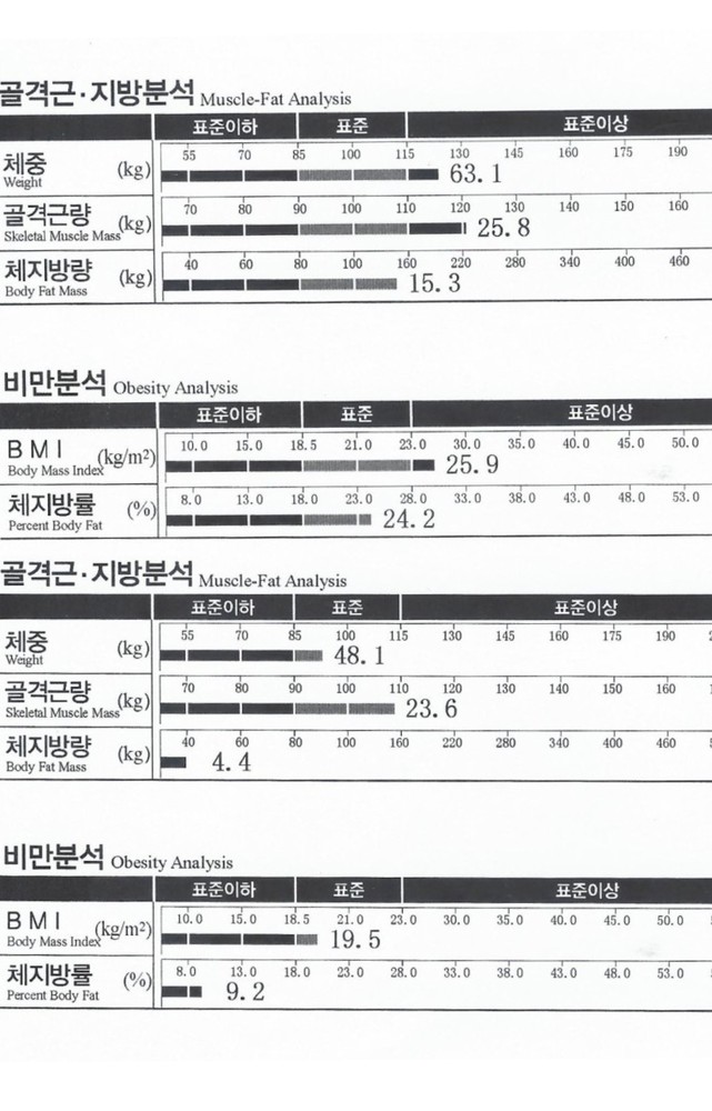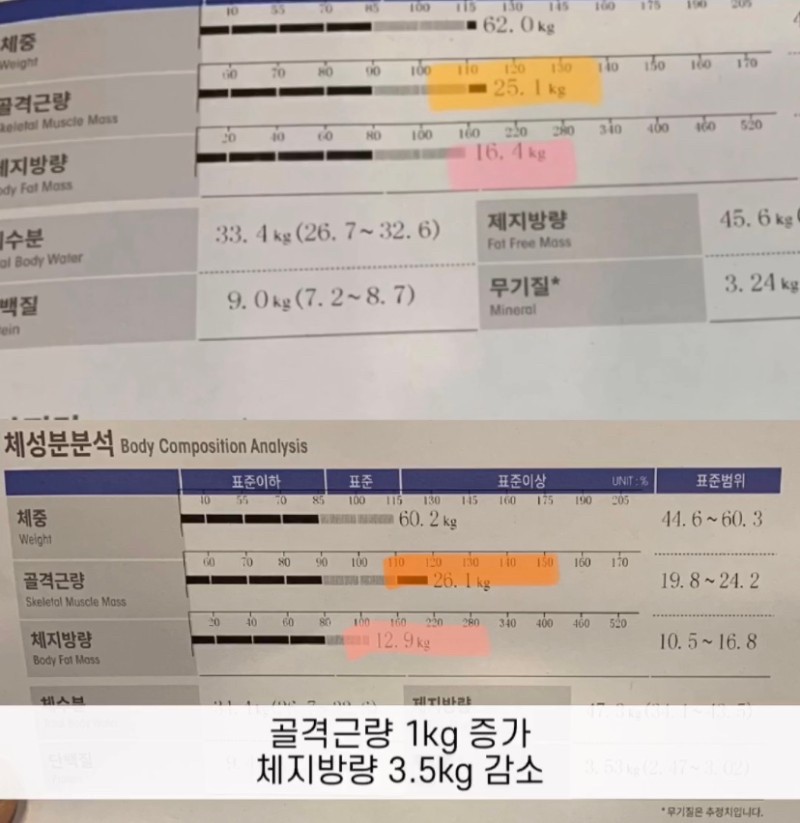 체중도 줄었지만 체지방은 빠지고 근육은 늘어서 매우만족합니다! 첫 상담할때 많은 고민도 있고 질문도했는데 친절하게 답해주셔서 감사했고, 운동하는 기간동안 격려와 응원에 끝까지 잘 해낼수 있었던것 같아요!! 운동법,사용법을 배우게됬고 혼자운동할수있는 법을 배워 감사하네요.