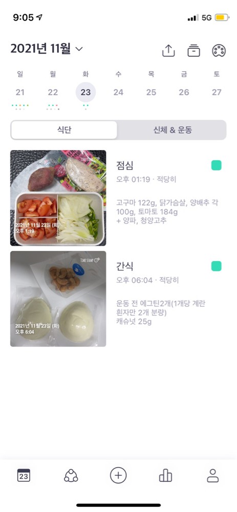 울지수쌤은 유산소도 매일 사진으로 인증 받고 식사도 다 사진으로 체크하고