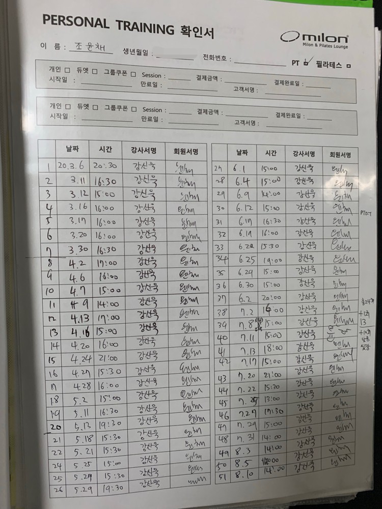 그리고 매 수업 때 꼼꼼하게 운동 일지로 피드백해 주시고 동작들을 정확히 하나하나 알려주시기 때문에 제대로 된 자세로 배울 수 있다는 점이 너무 좋았습니다. 거북목과 라운드 숄더로 목도 자주 아팠는데 통증이 개선되고 삶의 질도 상승했어요.