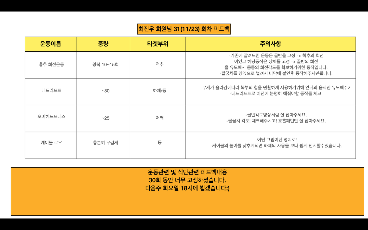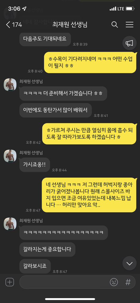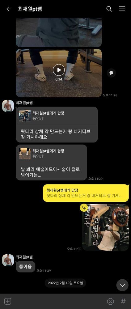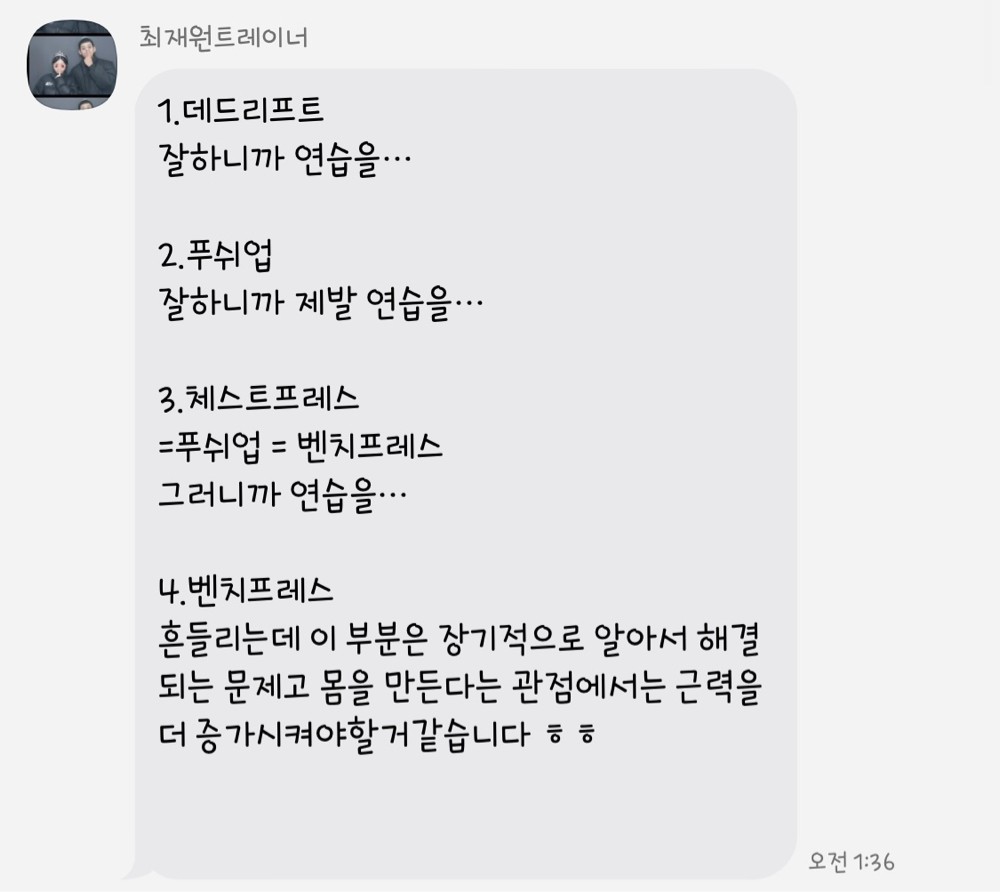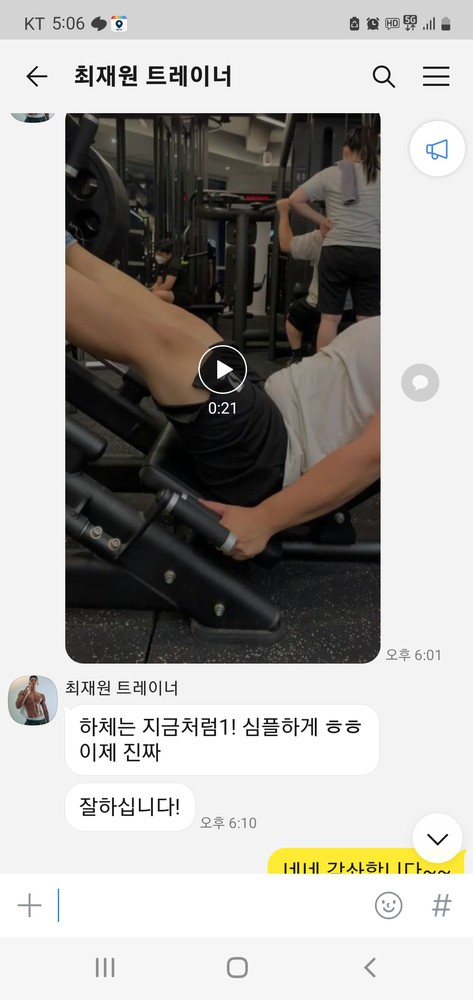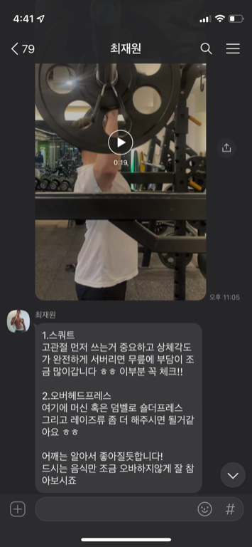 수업때마다 제가 운동하는 영상을 찍어주시고 수업이 끝나면 영상을 보내주시면서 항상 피드백 해주시는게 너무 좋았고,