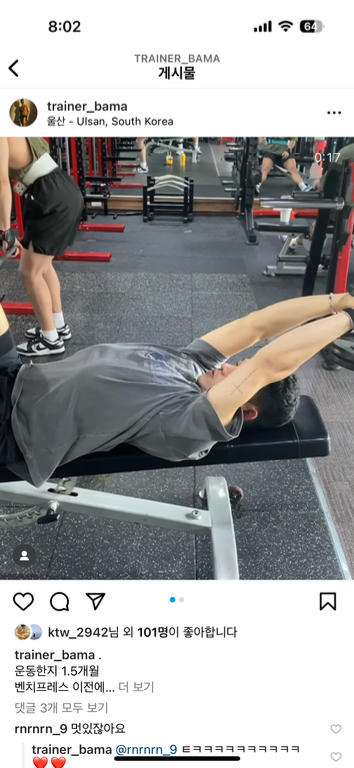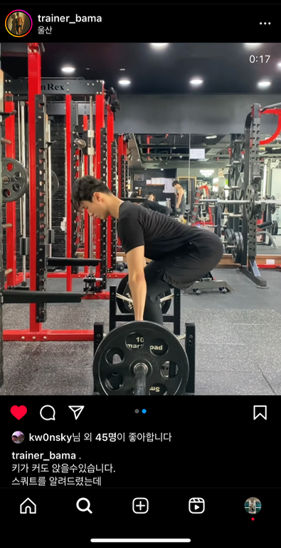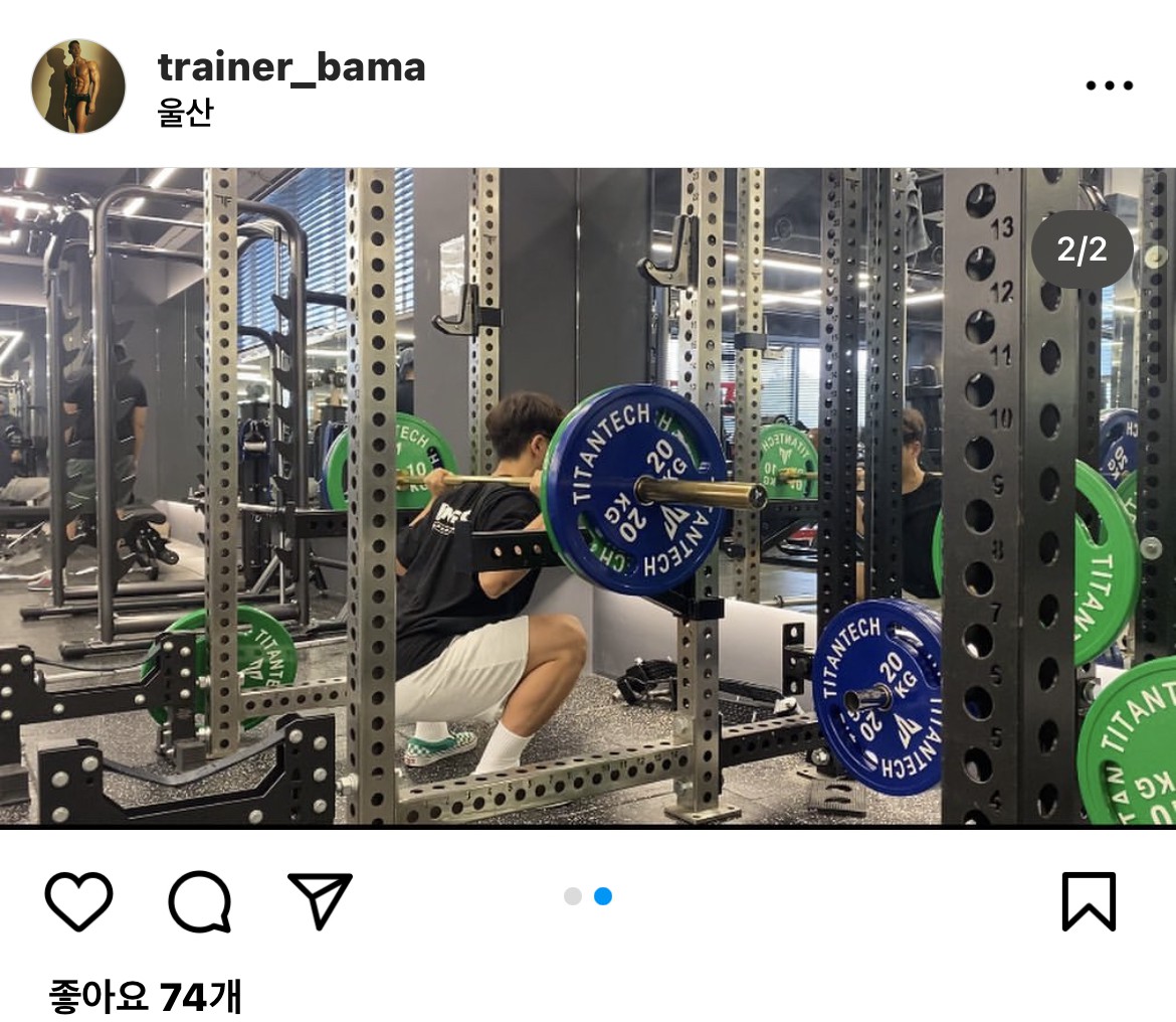 바마 선생님에게 PT 받는중입니다 첫 상담부터 제가 궁금했던 점을 시원하게 풀어주셔서 믿음은 물론이고 너무 재미있었습니다. 수업 하실때에도 단 1분도 버리는 시간 없이 꼼꼼하게 피드백 해주십니다 무거동 뿐 아니라 울산 안에서 PT 를 고민하고 계시다면 무조건 바마선생님에게 받아보세요!!