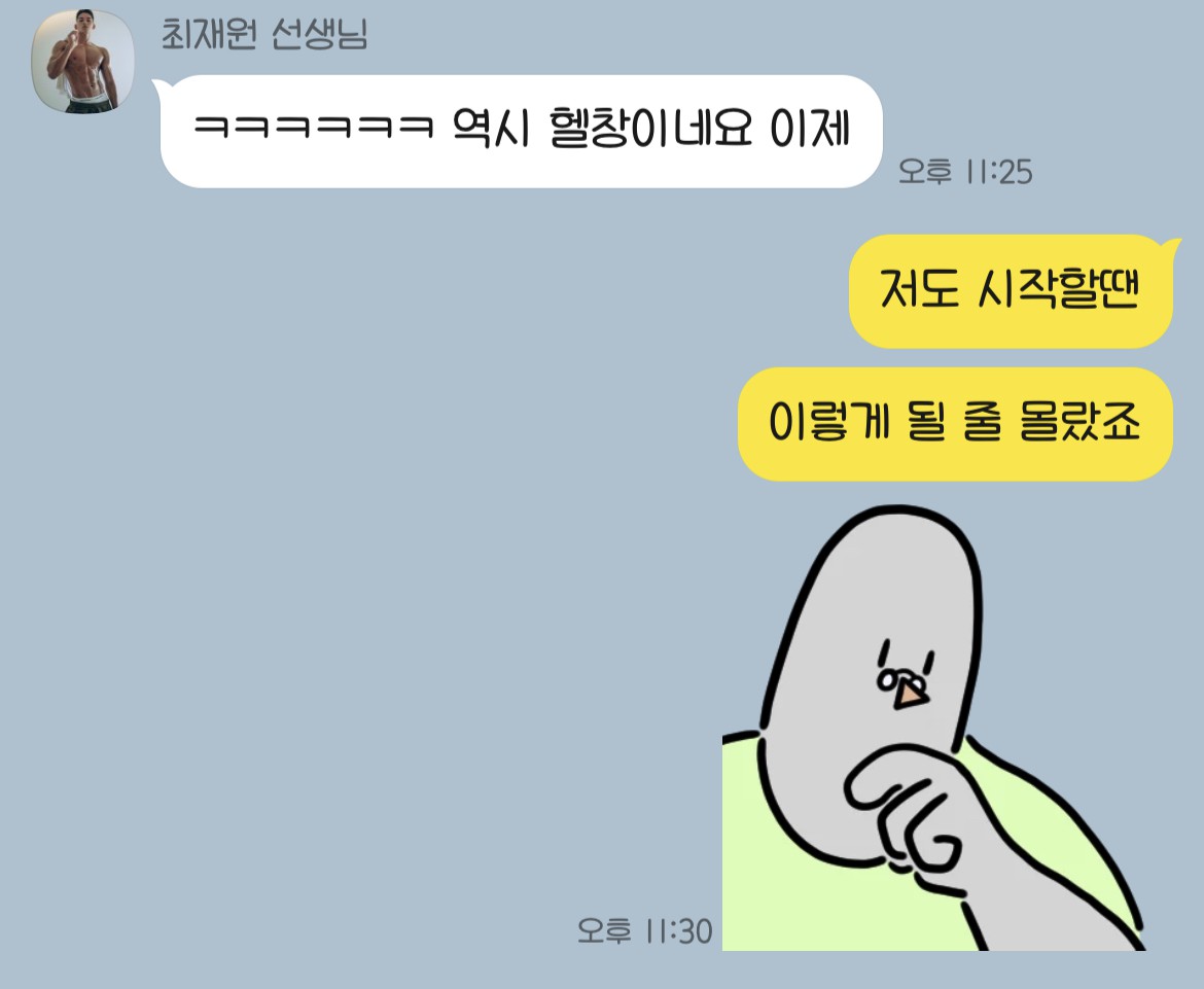 개인시간 쪼개가시면서 더 좋은 트레이너가 되고자 노력하시는 분이세요 ㅎㅎ