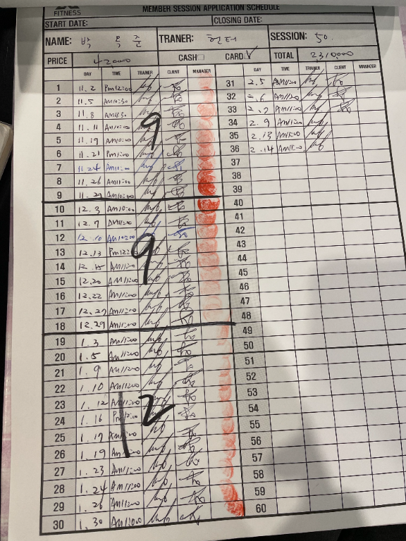 처음 헬스 시작할 때는 런닝머신 밖에 할 줄 몰랐었는데 선생님하고 2년 가까이 운동하면서 혼자 운동하는 법도 배우고 안좋았던 자세도 많이 교정됬어요. 매번 제 한계를 찾아 주셔서 감사합니다😊