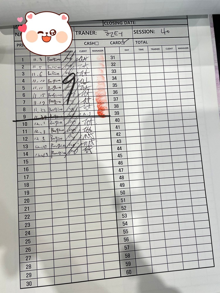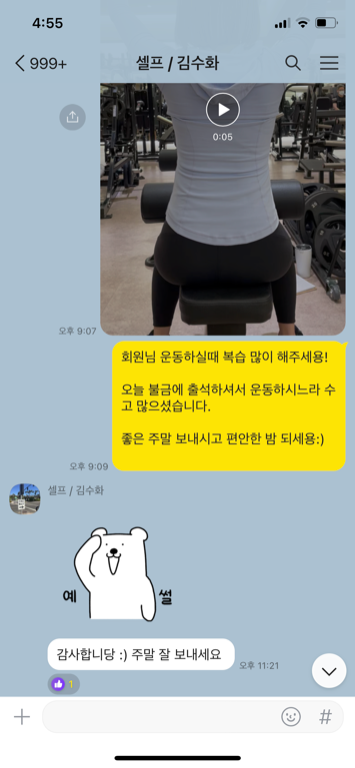 쌤한테 운동 잘 배워서 운동자체에 재미도 느끼고 흥미가 붙어서 한 2개월째부터는 저혼자 2주 연속 매일 하기도 하고 더더더더 운동이 좋아진거같아요♥