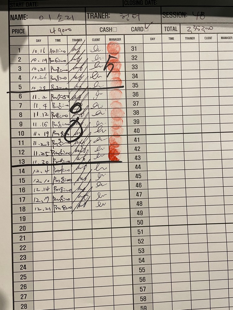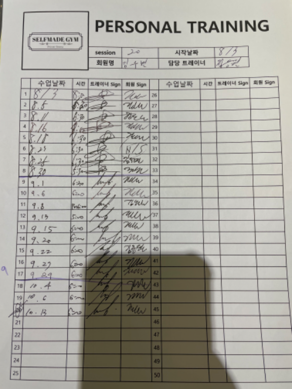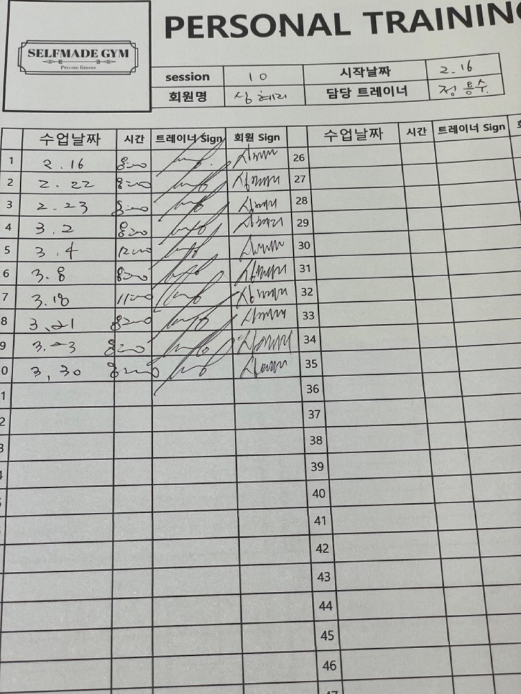감사합니다 회원님 수업후에 제가 보내드린 수업일지를 가지고 들으셨던 내용을 정리해서 다음 개인운동때 복습하시는 모습을 보면서 진짜 제대로 피티를 받으시는 분의 태도라고 생각이 들었습니다. 너무나 열심히 잘 들어주시고 잼미있어라 관심가지시며 열심히 해주셔서 감사합니다.