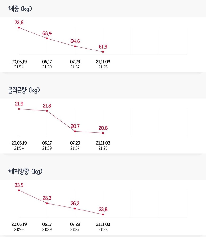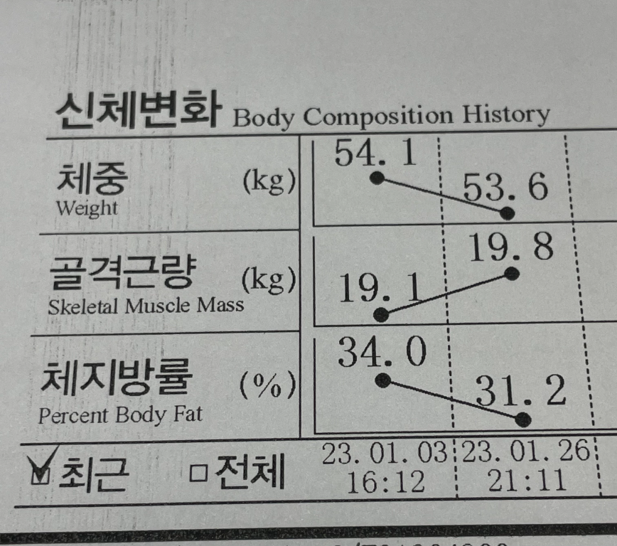 아직 저는 갈 길이 멀지만,, 매달 인바디 재면서 앞으로의 방향성, 현재의 문제점도 잘 짚어주셔서 쌤 믿고 이끌어주시는대로만 잘 따라가면 좋은 결과 있을거라고 생각합니다😊