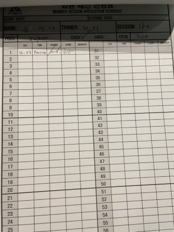 헬스장에 가면 운동인들에게 치이고, 기구도 어떻게 써야할지 몰라서 항상 끊어놓고 안가기 일쑤였는데 2024년이 되어 새로운 마음가짐으로 헬스장을 등록하고 쌤이 13년 경력이라는데서 믿음이 가 큰맘먹고 PT를 끊었습니다