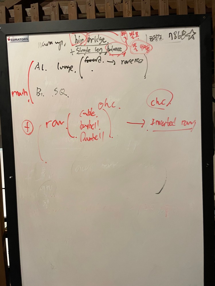 특히 가장 좋은 점은 부상에 대해서 많이 신경 써 주신다는 점 인데요! 운동하다가 부상이 올 수있는 자세와 운동하다 느껴지는 통증 부위들을 항상 체크해 주셔서 좋았습니다!