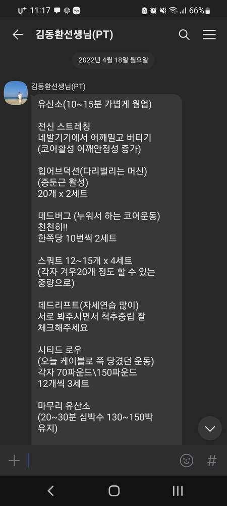 갯수만 세는 pt가 아닌 pt 하는 50분의 시간 동안 자세를 유심히 봐주셔서 좋았습니다