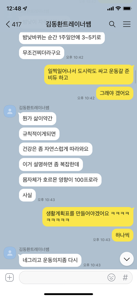 몇년전 모 헬스장에서 헬스 첫수업 받기 전에 식단을 무리하게 짜줘서 환불을 받았던 입장에서 김동환 쌤은 절대절대 무리하게 안짜주세요!