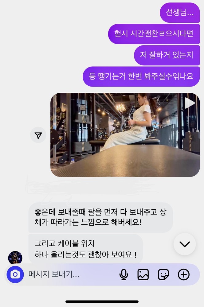 선생님은 피티 졸업후에도 피드백도 잘해주시고 궁금한거 물어보면 항상 친절하고 자세하게 알려주십니다.