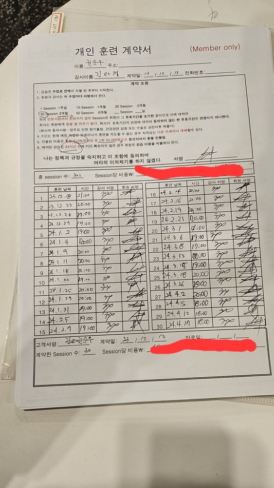 30회정도 수업을 받았습니다. 운동하는 방법, 동기부여 등 여러가지로 많은 도움을 받아서 감사합니다! 매 수업마다 항상 제 근육의 한계를 느낄 수 있어서 좋았고 재밌게 수업받았던 거 같습니다.