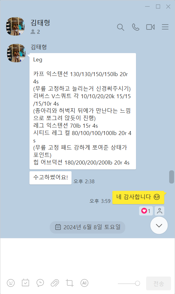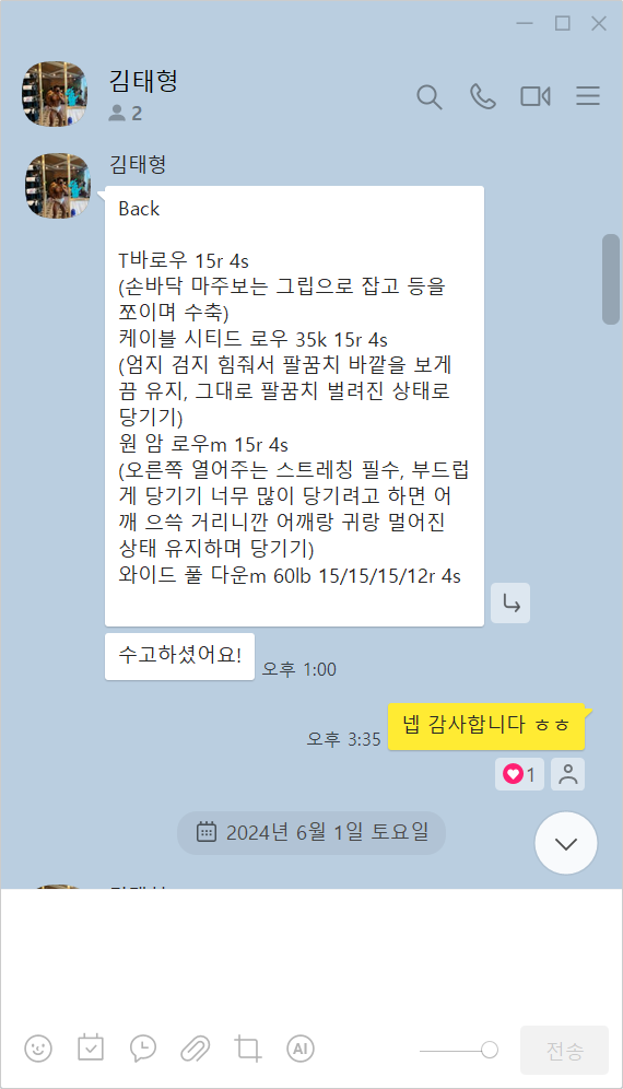 꾸준히 대회 나가시고 프로분께 PT도 받으면서 계속 발전하려고 노력하시는 김태형선생님한테 수업받기를 잘했다고 천번 만번 생각합니다!!
