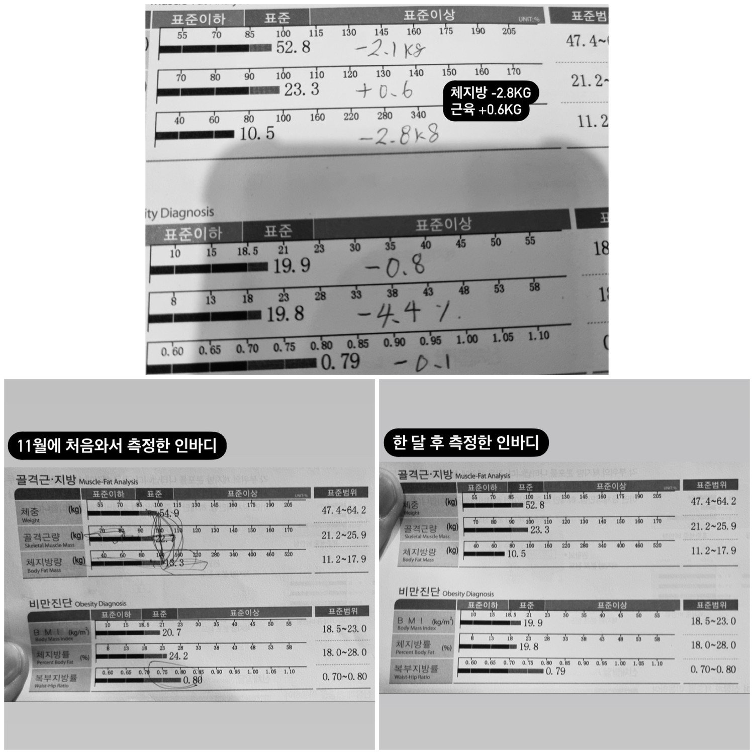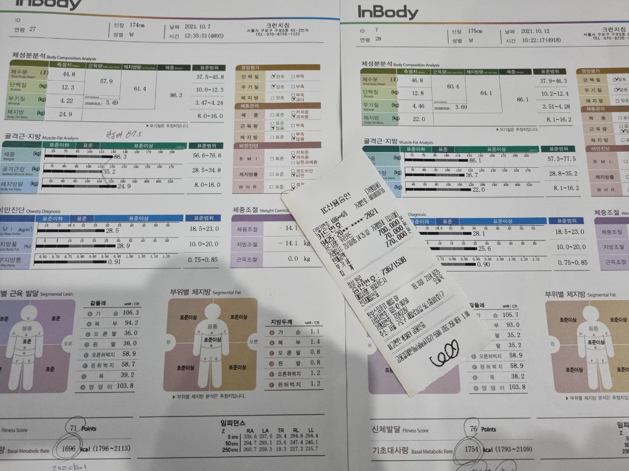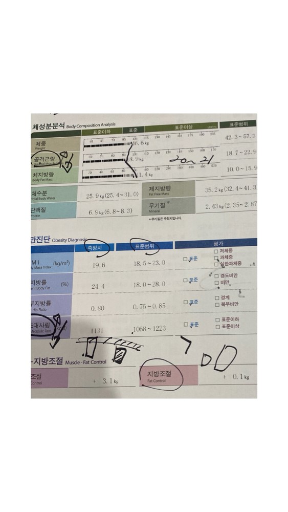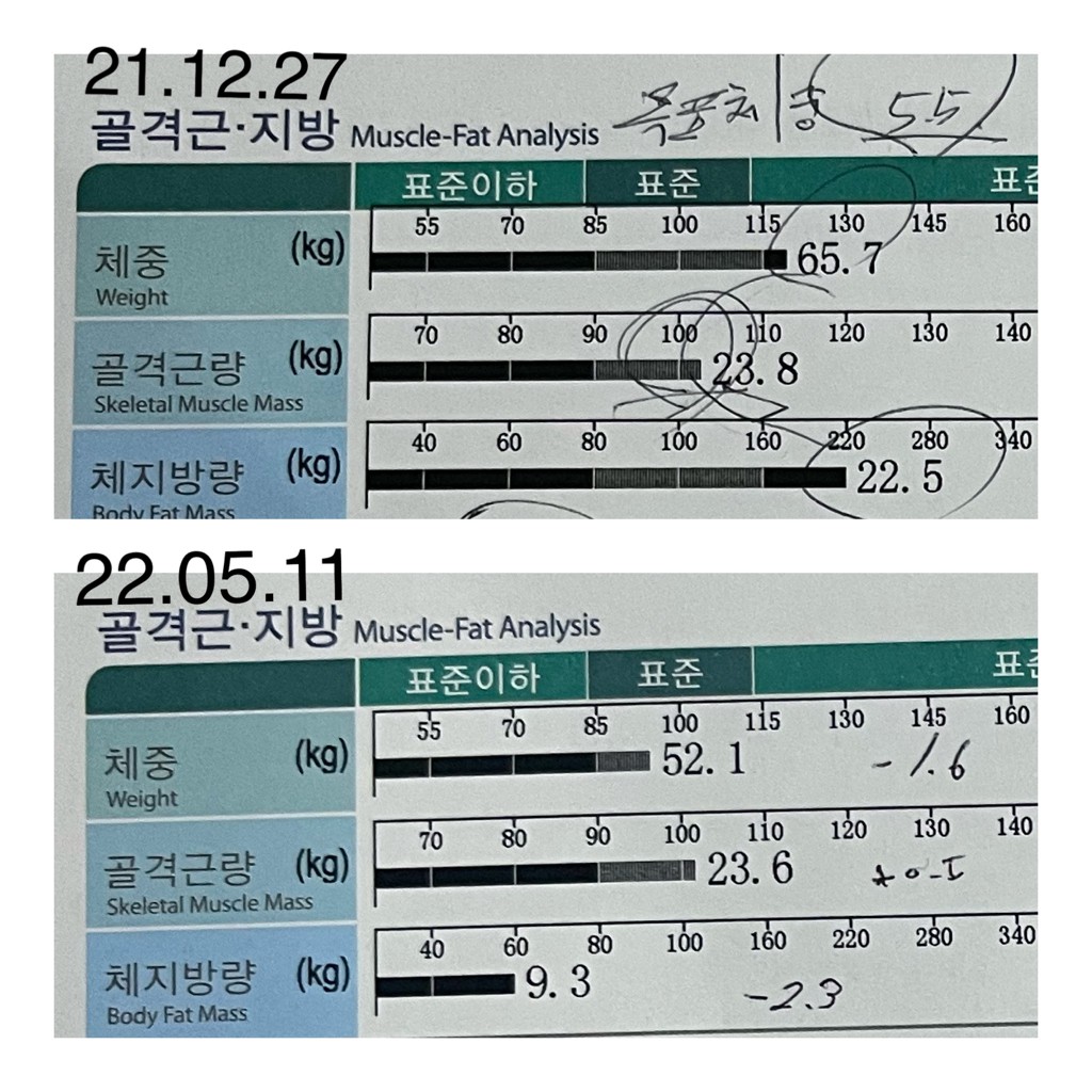 뭔가 알기쉽게 알려주셔서 더 열심히 할 수 있었습니다. 첨부한 표 보시면 알듯이 몸무게는 그대론데 근육이 더 늘었습니다.눈바디는 더 좋아요 ㅎㅎㅎ 앞으로도 혼자 운동 잘 할수있을것같습니다. 잘 가르쳐준 상연쌤 감사합니다.