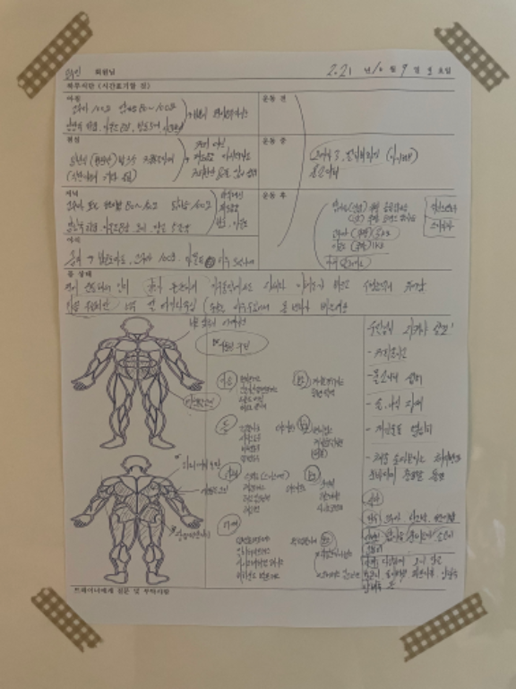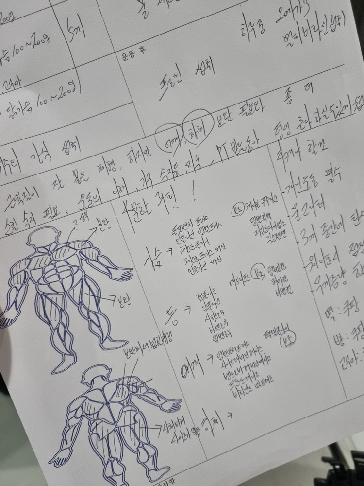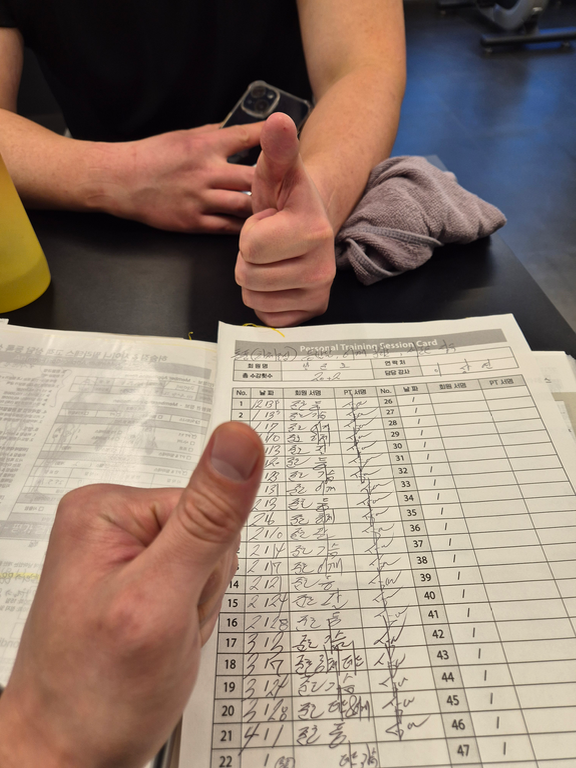체중도 있고 내향인으로서 솔직히 새 운동 배우는 것도, 새로운 체육관에 적응하는 것도 마음이 참 부담스러웠습니다ㅠㅠ 하지만 선생님 항상 밝게 인사해주시고 적극적으로 임해주셔서 마음의 짐을 덜고...즐겁게 운동했습니다. 처음엔 제가 운동하는 모습 보는 것도 보기 민망했지만 보내주신 영상 보고 오늘 한 운동 무게 및 목록 보면서 다 체크하게 되더라구요.