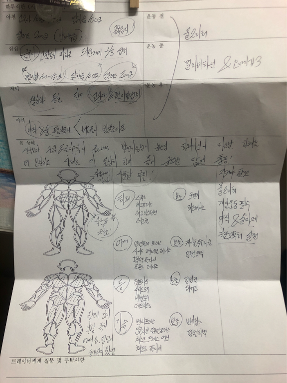 운동 루틴 등 정말 정확히 잘 잡아주셨습니다.