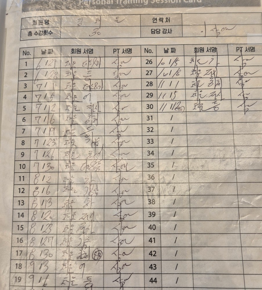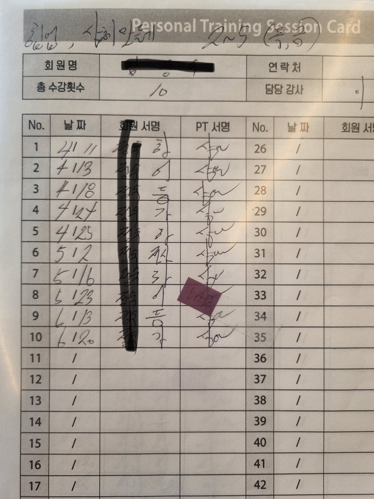 상연쌤과 25회 정도 피티를 진행하였습니다