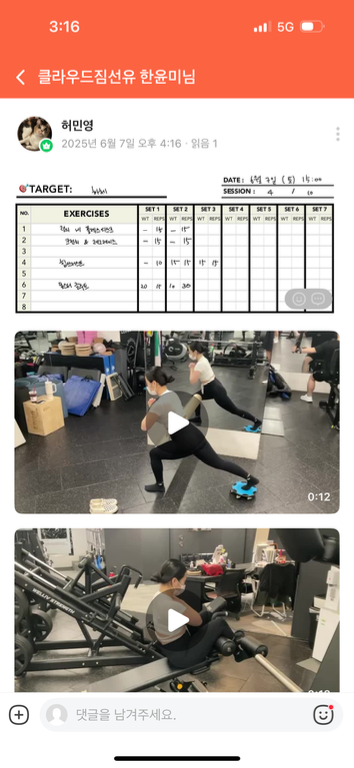 끝나고 나면 힘들어도 뿌듯한거같아요 허민영 트레이너님 최고 💜