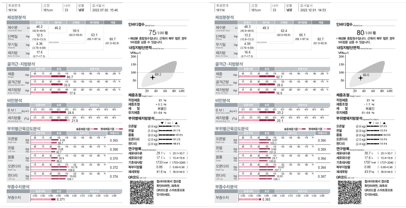 그리고 운동 한 달 만에 근육량만 2kg 증가하게 되었습니다.
