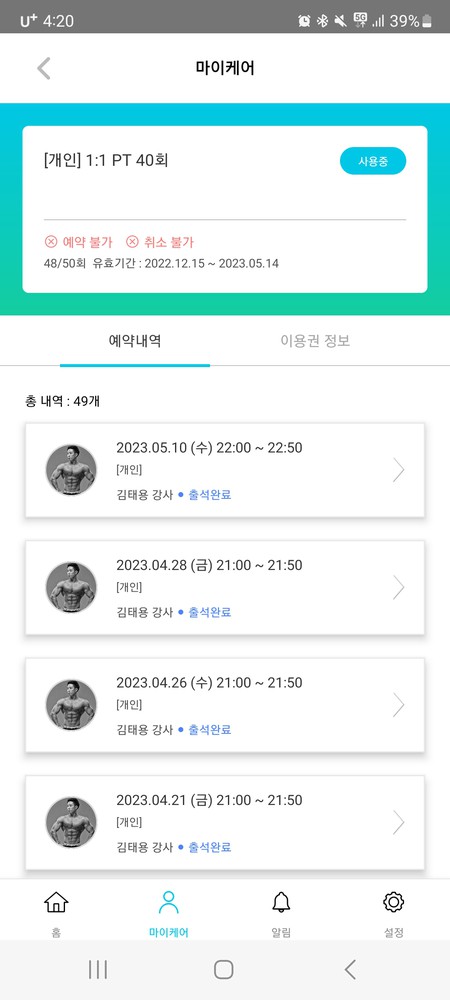 그 중 가장 만족했던 트레이너 선생님입니다.