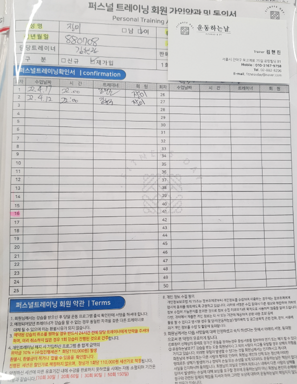 다시 한번 현진쌤께 감사드리고 다음 PT 때까지 헬쓰장에 자주 가서 조금이라도 근력운동을 할 예정입니다 ~^^